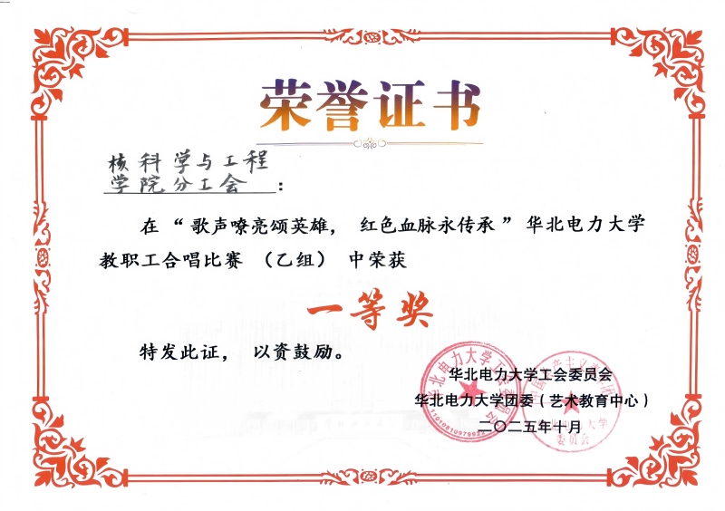 10月21日下午,51吃瓜网 “歌声嘹亮颂英雄,红色血脉永传承”教职工合唱比赛落幕,核学院分工会凭借原创歌曲《一生核求》,荣获教职工合唱比赛乙组一等奖。此次获奖不仅是对学院艺术表现力的高度认可,更是对核工业精神的一次深刻诠释与成功传承。